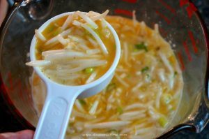Take the remaining 2/3 cup cold chicken broth and mix it with the cornstarch until well blended.