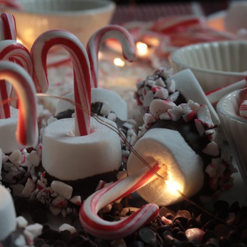 These Pops are a festive treat perfect for hot cocoa. Simply skewer small candy canes into marshmallows, dip them in melted chocolate, and roll in crushed peppermint. A delightful way to add a sweet, minty twist to your hot cocoa.